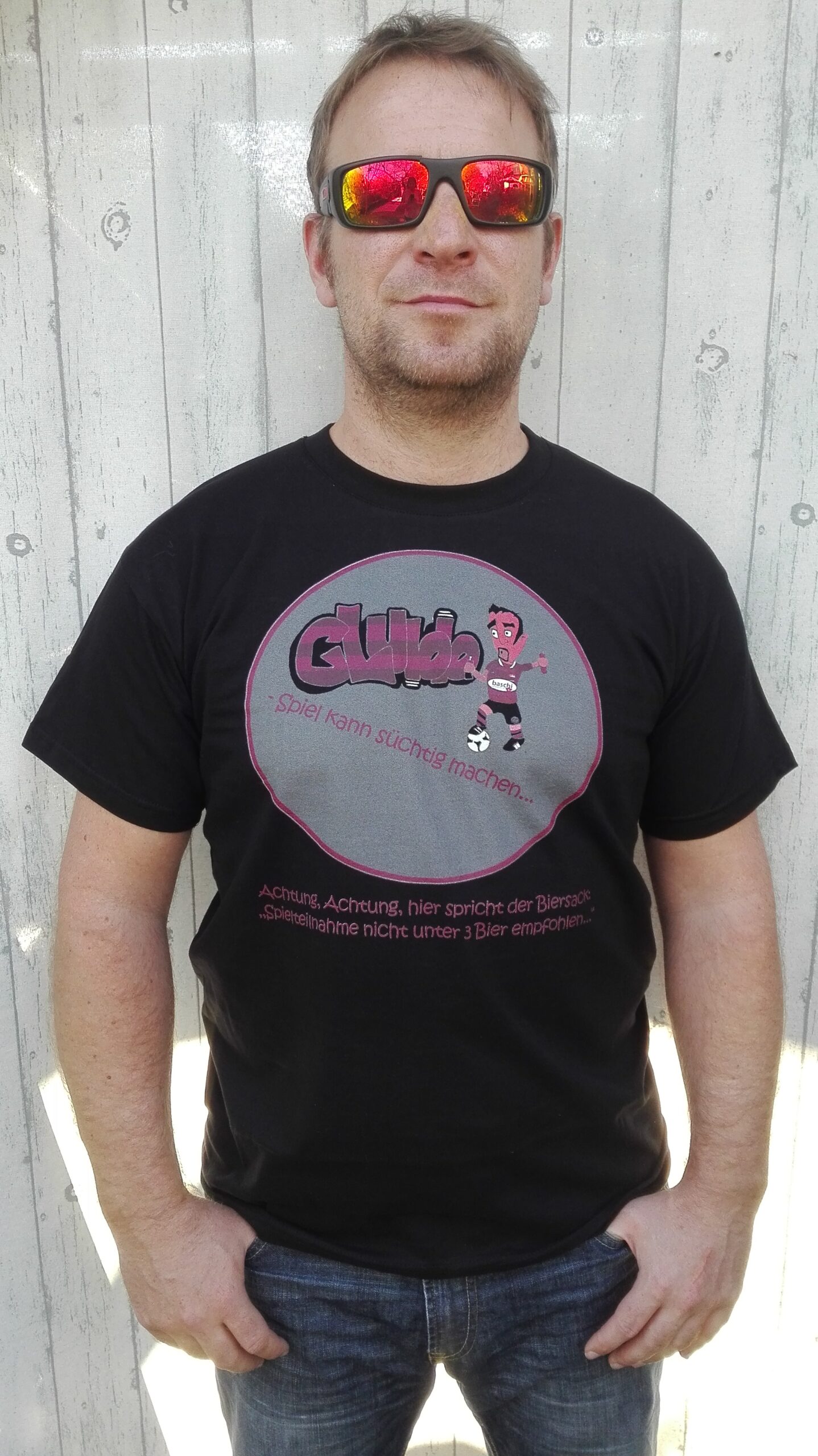 T-Shirt – Glubbspiel kann süchtig machen (rötliche Schrift)